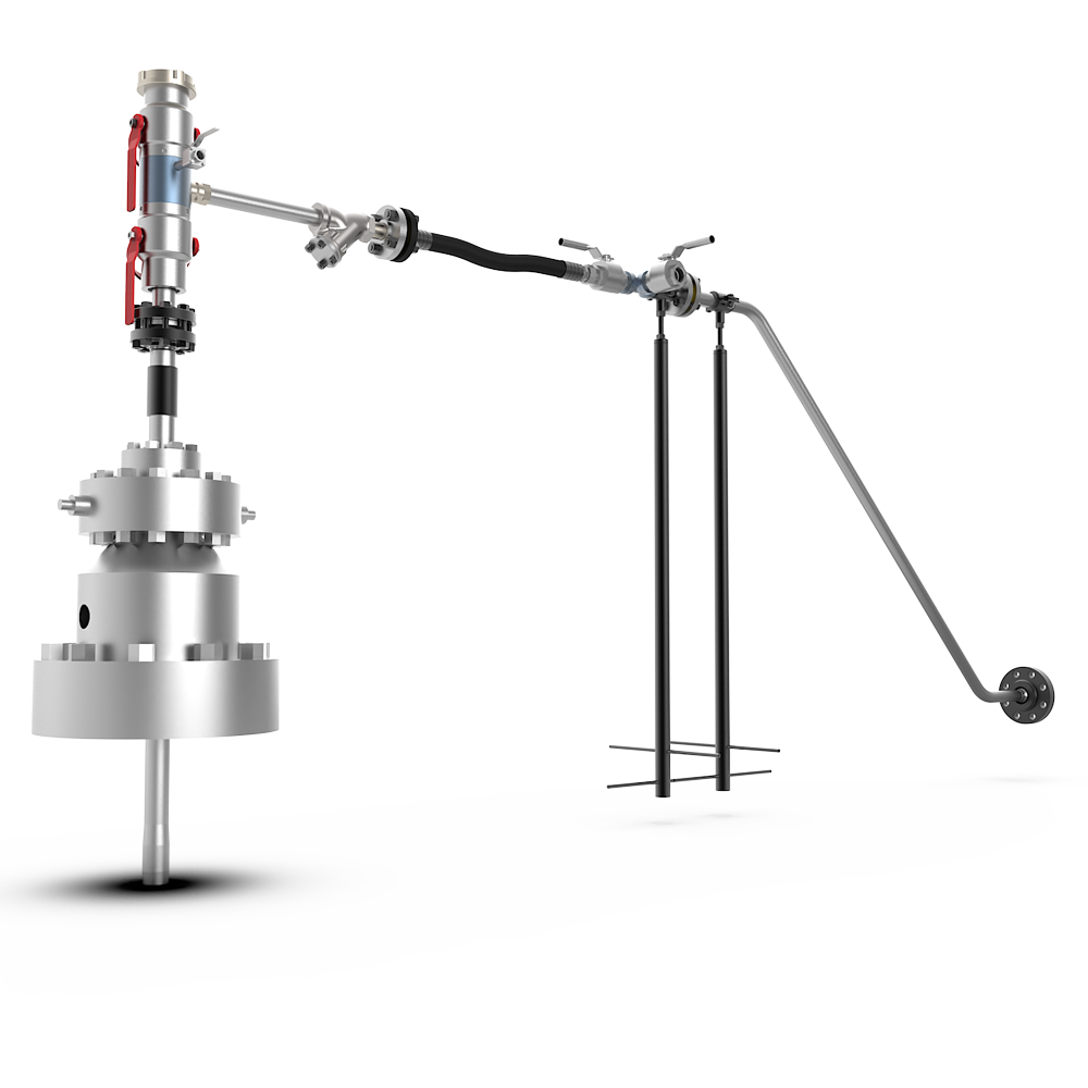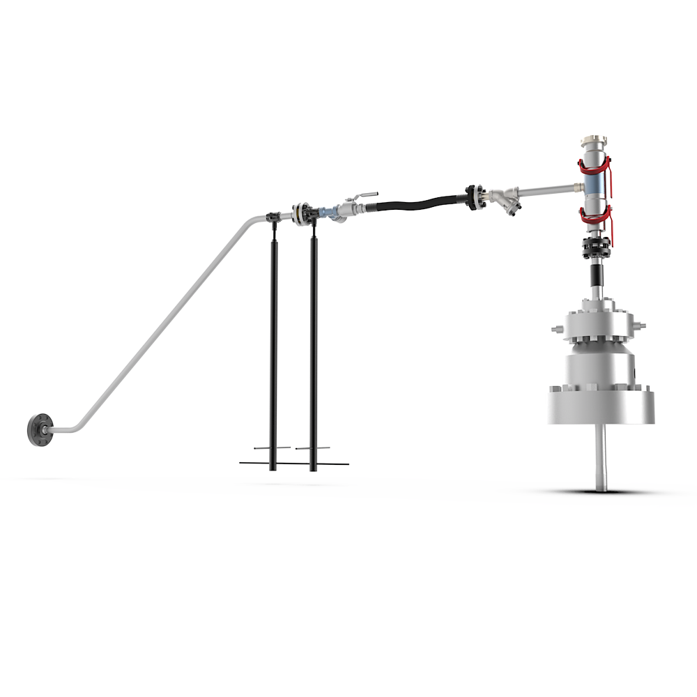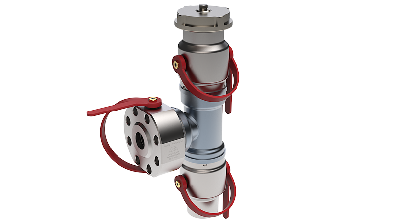 La Te Flujo 2 3/8” EU x 2” RF S900 es un conjunto Integral de Triple Válvula Esférica con Paso Total en Acero Inoxidable que se utiliza como cabezal en los puentes inyectores, teniendo la particularidad de llevar una de las Válvulas Esféricas dentro de la Brida en la salida transversal.